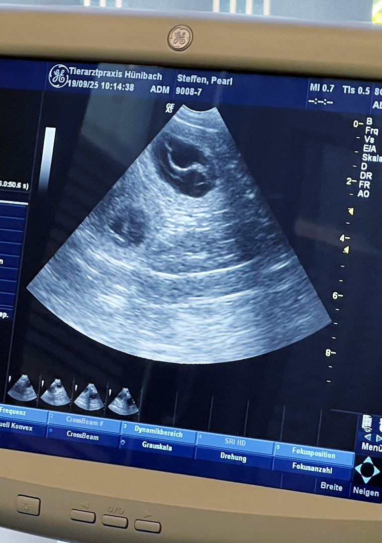 Wir sind sehr happy! Pearl und Barclay werden Eltern – das hat die Ultraschall-Untersuchung bei Dr. med. vet. Daniel Zimmerli gezeigt. Wir sind sehr dankbar und freuen und auf unseren V-Wurf!