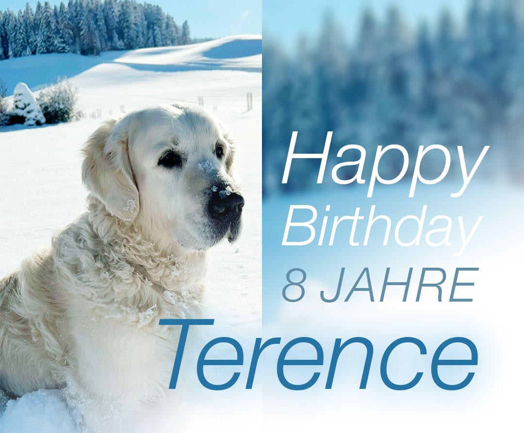 Lieber Terence, wir wünschen dir von Herzen alles Liebe und Gute zu deinem 8. Geburtstag! Du bist ein herzensguter Rüde und ein treuer Freund. Schön, bist du ein Teil von unserem Rudel! Wir freuen uns auf noch viele gemeinsame Jahre!