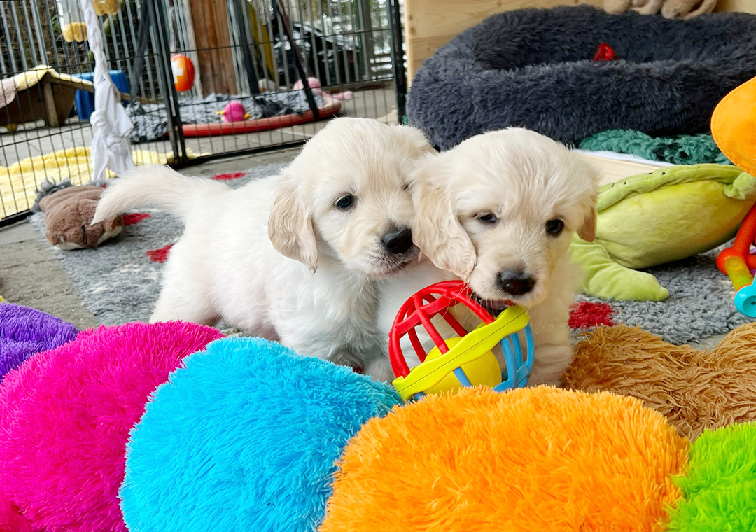 Die 7 Welpen von Pearl und Barclay sind richtig gewachsen und entwickeln sich super. Sie sind neugierig, lustig, aufgestellt und top fit. Sie sind nun auch regelmässig draussen und entdecken ihre Umwelt, spielen zusammen und geniessen die Besucher.