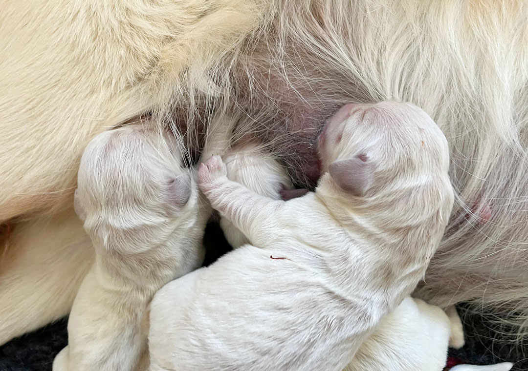Jetzt ist auch unser zweiter Wurf auf der Welt: Wir sind sehr dankbar und glücklich, dass uns Pearl und Barclay 7 gesunde Welpen geschenkt haben. Am 24. Oktober 2025 sind 2 Hündinnen und 5 Rüden per Kaiserschnitt zur Welt gekommen. Wir danken Dr. med. vet. Daniel Zimmerli und seinem Team herzlich für die super und einfühlsame Arbeit und Betreuung!
