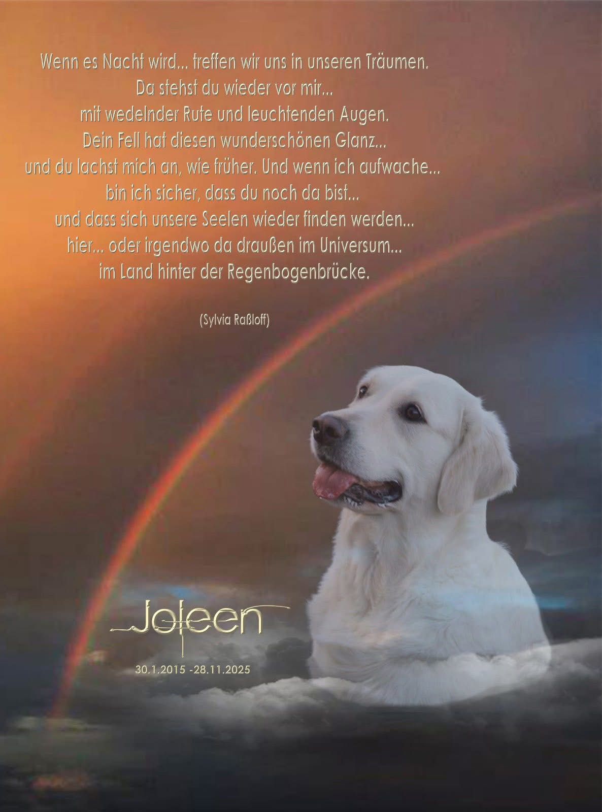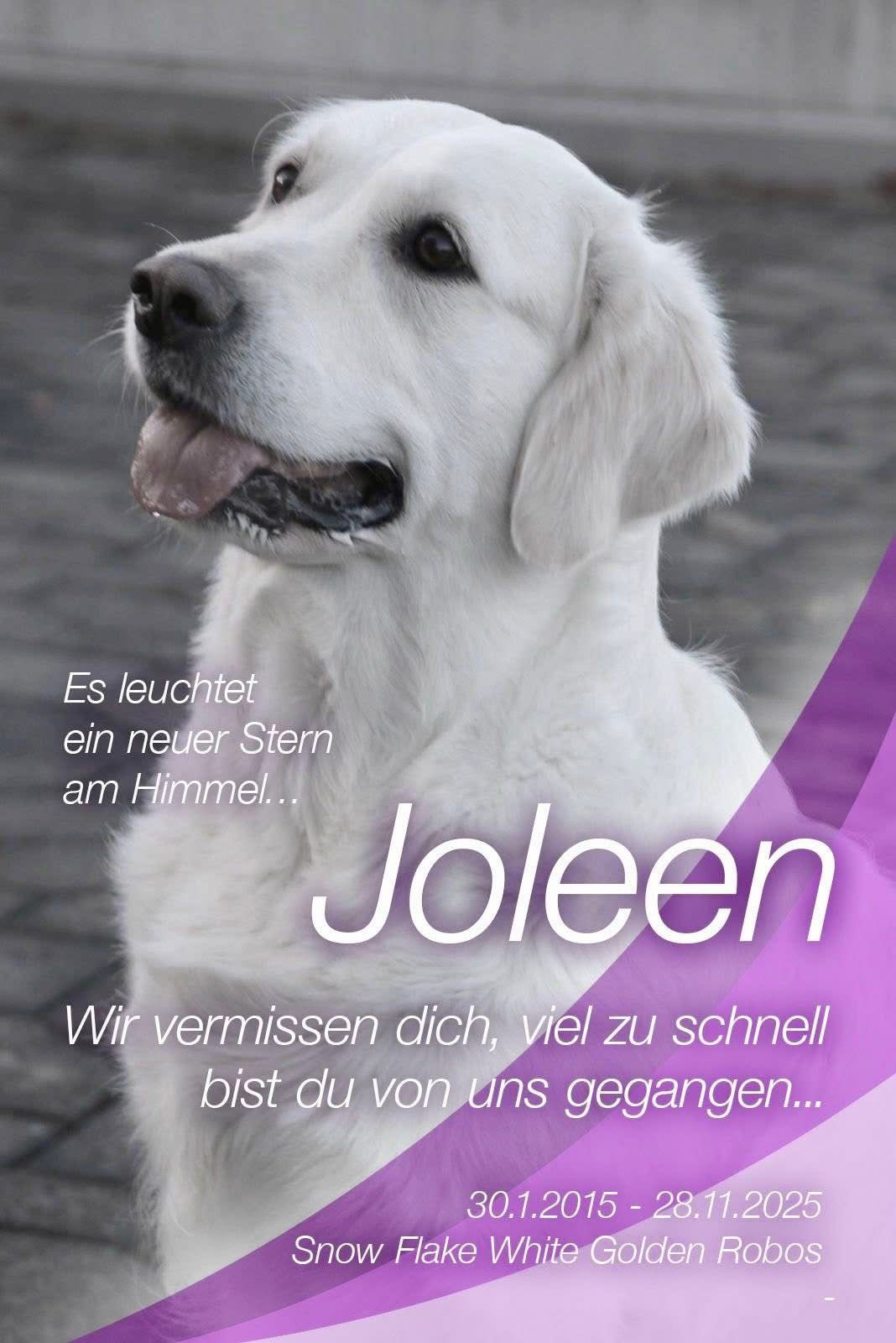 Liebe Joleen (VetCH Snowflake white Golden Robos), wir können es noch nicht glauben, aber du hast uns am Freitag, 28. November 2025 kurzfristig für immer verlassen…
