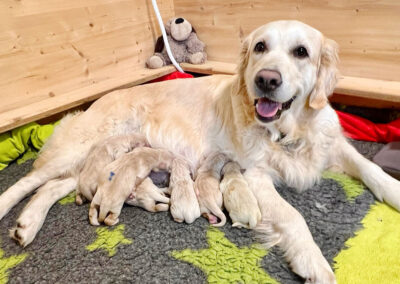 Wir sind sehr happy und dankbar! Malia und Magnus wurden am 19. Oktober 2025 Eltern von 6 gesunden Welpen. Es sind 4 Hündinnen und 2 Rüden. Malia hat die Geburt grossartig gemeistert und zeigt sich als Mutter wie gewohnt grossartig. Allen geht es tip top. Wir freuen uns sehr auf die kommenden Wochen mit diesen 6 Goldstücken!
