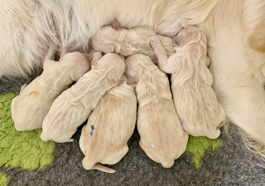 Wir sind sehr happy und dankbar! Malia und Magnus wurden am 19. Oktober 2025 Eltern von 6 gesunden Welpen. Es sind 4 Hündinnen und 2 Rüden. Malia hat die Geburt grossartig gemeistert und zeigt sich als Mutter wie gewohnt grossartig. Allen geht es tip top. Wir freuen uns sehr auf die kommenden Wochen mit diesen 6 Goldstücken!