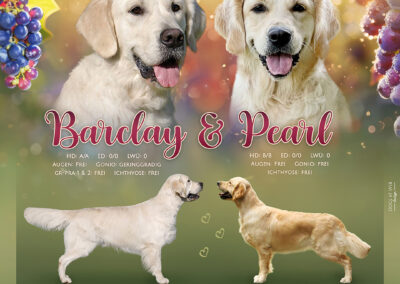 | Magic Dream Malia of Golden Motions HD: A/A, ED: 0/0 Augen: HC/PRA/RD-frei / Gonio frei Ichthyose: frei | I’m forever yours Liam of Golden Motions HD: A/A, ED: 0/0, LWÜ: 0 Augen: alles iO inkl. Gonio frei Gebiss: Schere komplett Formwert: bestanden, Wesenstest: bestanden | Multi-CH Capital Copenhagen Golden Robos HD A, ED free, Eyes clear DNA tested for ICT Result: free of Ichthyosis. DNA Tested for GR_PRA 1 result CLEAR DNA Tested for GR_PRA 2 result CLEAR |