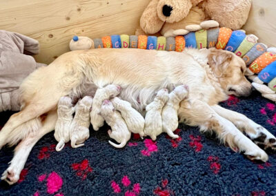 Wir sind sehr dankbar und glücklich, dass uns Pearl und Barclay 7 gesunde Welpen geschenkt haben. Am 24. Oktober 2025 sind 2 Hündinnen und 5 Rüden per Kaiserschnitt zur Welt gekommen. Wir danken Dr. med. vet. Daniel Zimmerli und seinem Team herzlich für die super und einfühlsame Arbeit und Betreuung!